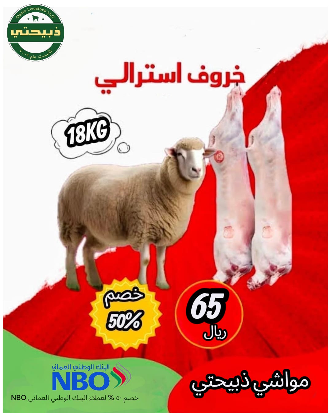 متوفر ذبح محلي طازج / حي غير مذبوح / ذبح في المنزل